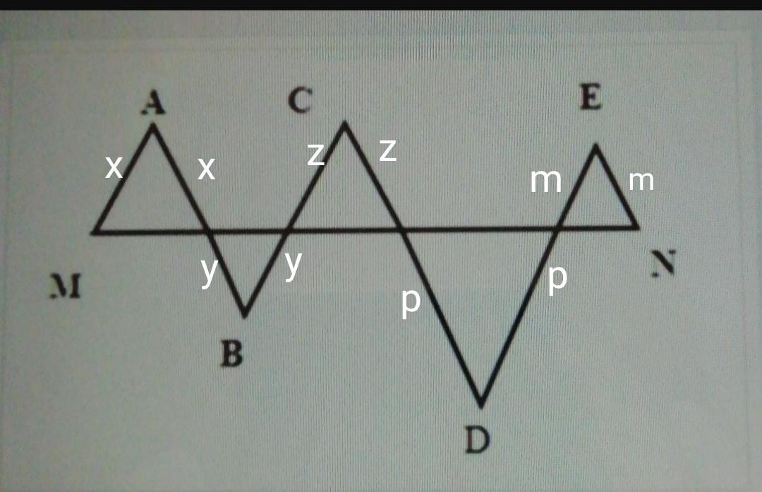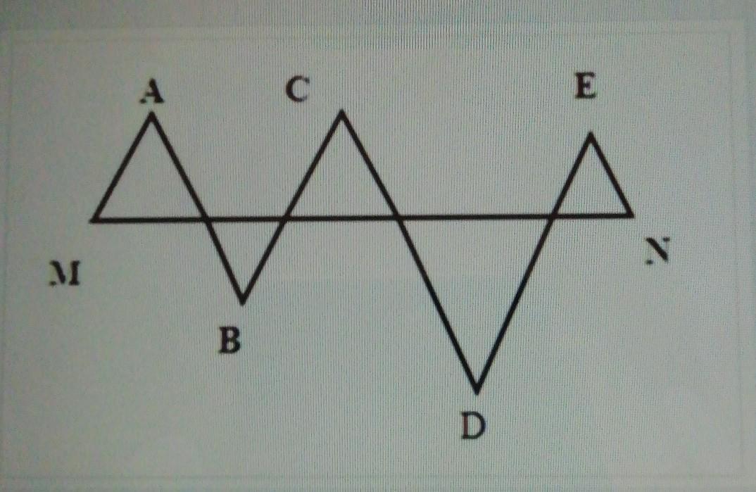 На рисунке отрезок MN пересечен ломаной. При этом образовалось пять равносторонних треугольников. Какова длина ломаной MABCDEN, если длина отрезка MN равна 18 см?