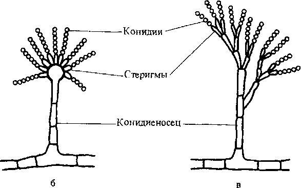 Конидии - неподвижные грибные споры бесполого размножения. Конидиеносцы - структуры, на корторых развиваются конидии.