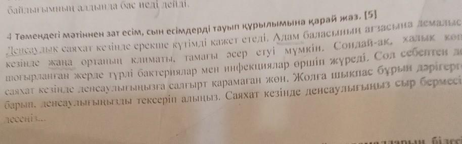 - Төмендегі мәтіннен зат есім, сын есімдерді тауып құрылымына қарай жаз. [5] Денсаулық саяхат кезінде ерекше күтімді қажет етеді. Адам баласының ағзасына демалыс кезінде жаңа ортаның климаты, тамағы әсер етуі мүмкін. Сондай-ақ, халык көп шоғырланған жерде түрлі бактериялар мен инфекциялар өршіп жүреді. Сол себептен де саяхат кезінде денсаулығыңызга салғырт қарамаған жөн. Жолға шықпас бұрын дәрігерге барып, денсаулығыңызды тексеріп алыңыз. Саяхат кезінде денсаулығыңыз сыр бермесін десеңіз... помогите дам 100баллов это СОЧ