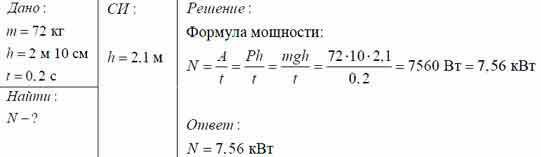 1. Спортсмен, массой 72 кг прыгнул в высоту на 2м. Определите мощность, которую он развил за 0,2 с. Помогитеее