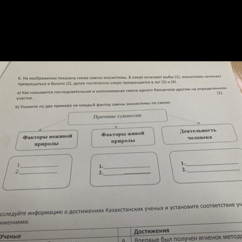 Б) Укажите по два примера на каждый фактор смены экосистемы по схеме: