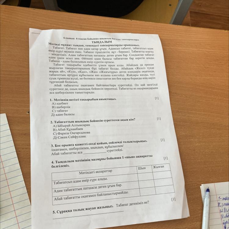 Мәтінді мұқият тыңдап, төмендегі тапсырмаларды орындаңыз.