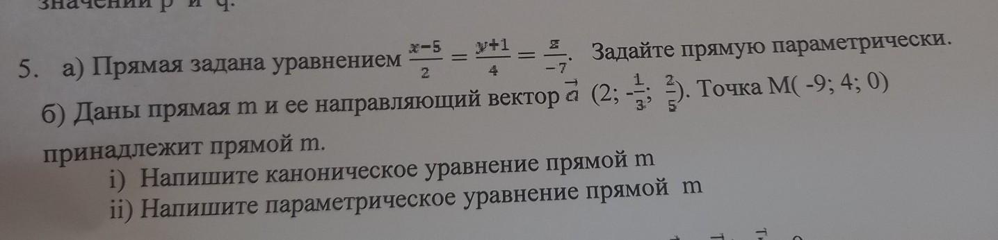 а) Каноническое уравнение прямой . Параметрические уравнения этой прямой получим, если каждую дробь приравняем к параметру t :