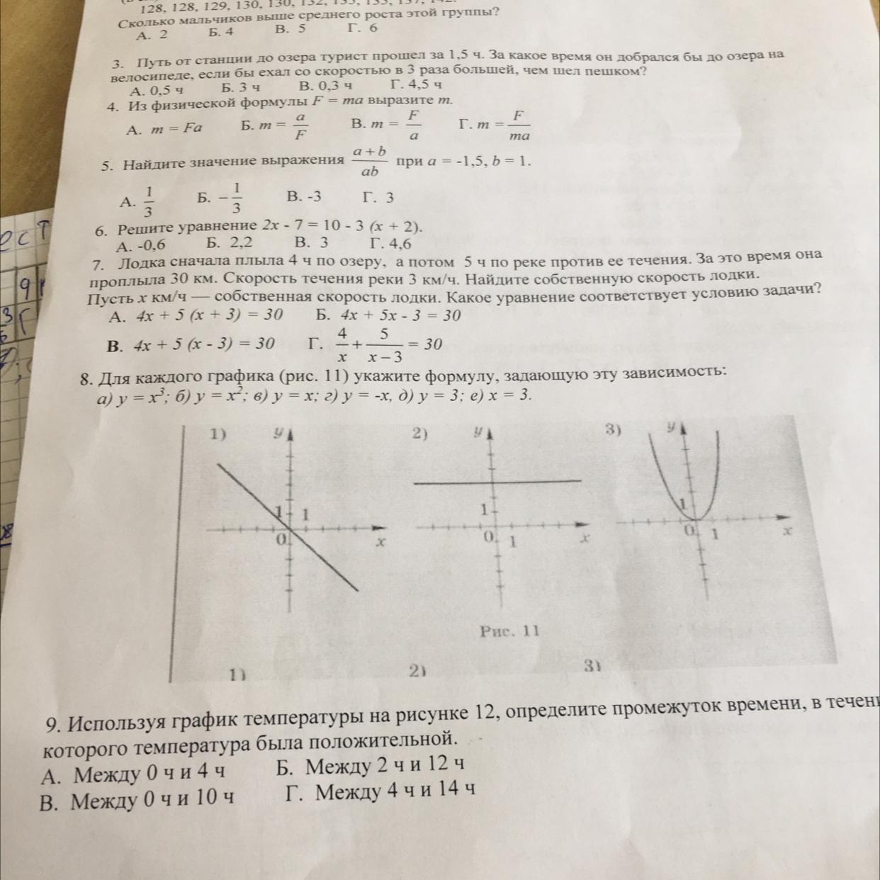 8)1 -г) у=-х; 2) д) у=3; 3)б) у=х²