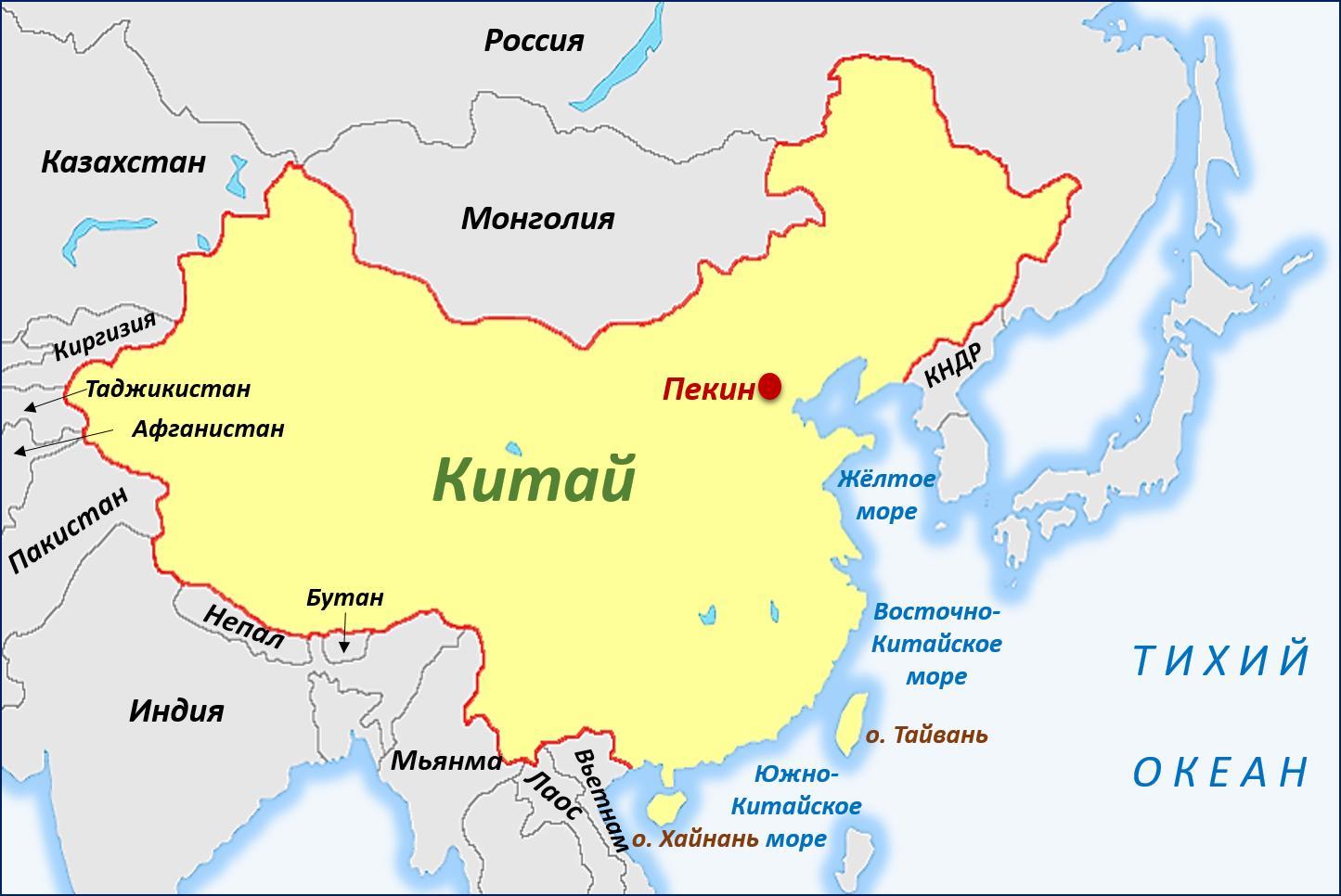 - Китай расположен в Евразии, в части света Азия, в Юго-Восточной Азии.Граничит с Россией, Монголией, КНДР, Казахстаном, Киргизией, Таджикистаном, Афганистаном, Пакистаном, Индией, Непалом, Бутаном, Мьянмой, Лаосом, Вьетнамом.Столица страны-Пекин.