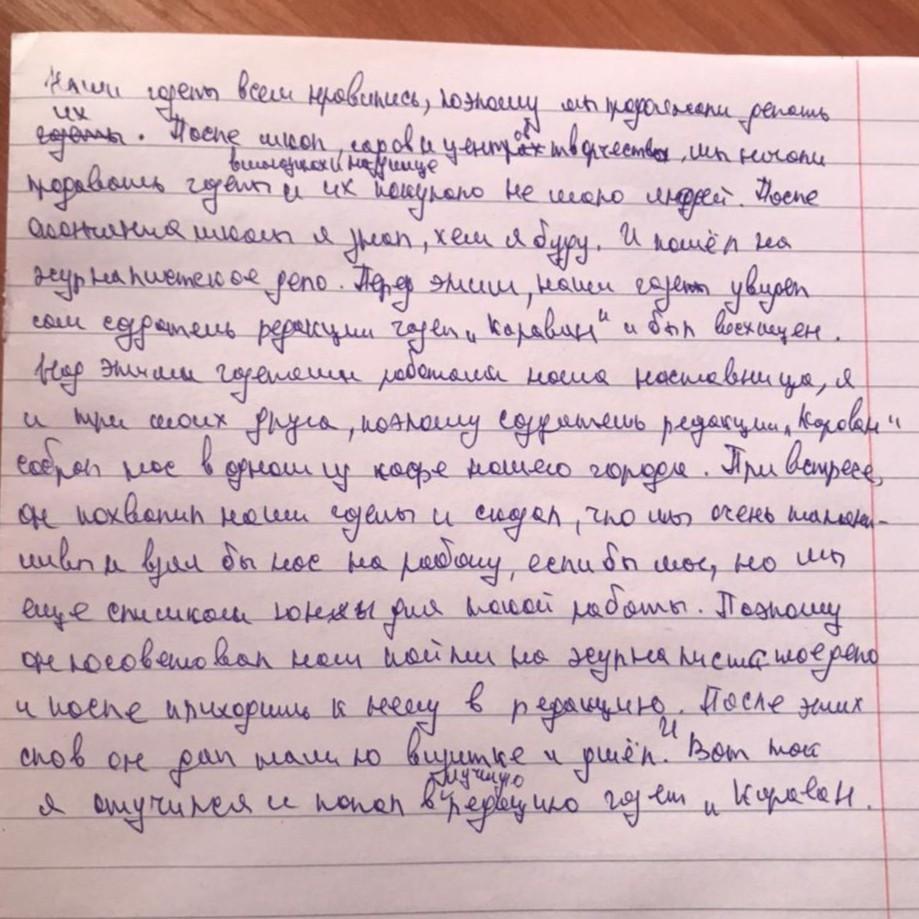 Письмо. Задание 5. Напишите продолжение рассказа (около 200-250 слов). Используйте Языковые средства для воздействия на читателя. Используйте сложные предложения. Соблюдайте грамотность речи. Хотите узнать, как я попал в редакцию газеты «Караван»? Я всегда увлекался журналистикой. Почему-то особенно я любил газеты. Дело в том, что у нас при школе был кружок журналистики, где мы создавали свою газету. Ежемесячно мы работали над созданием номера: придумывали интересное наполнение. Отыскивали интересующую информацию, старались быть в курсе всех событий в нашем районе и осветить их в следующем номере. Эту газету МЫ распространяли в школах и садах, в центрах творчества. И мне очень нравилась эта деятельность!