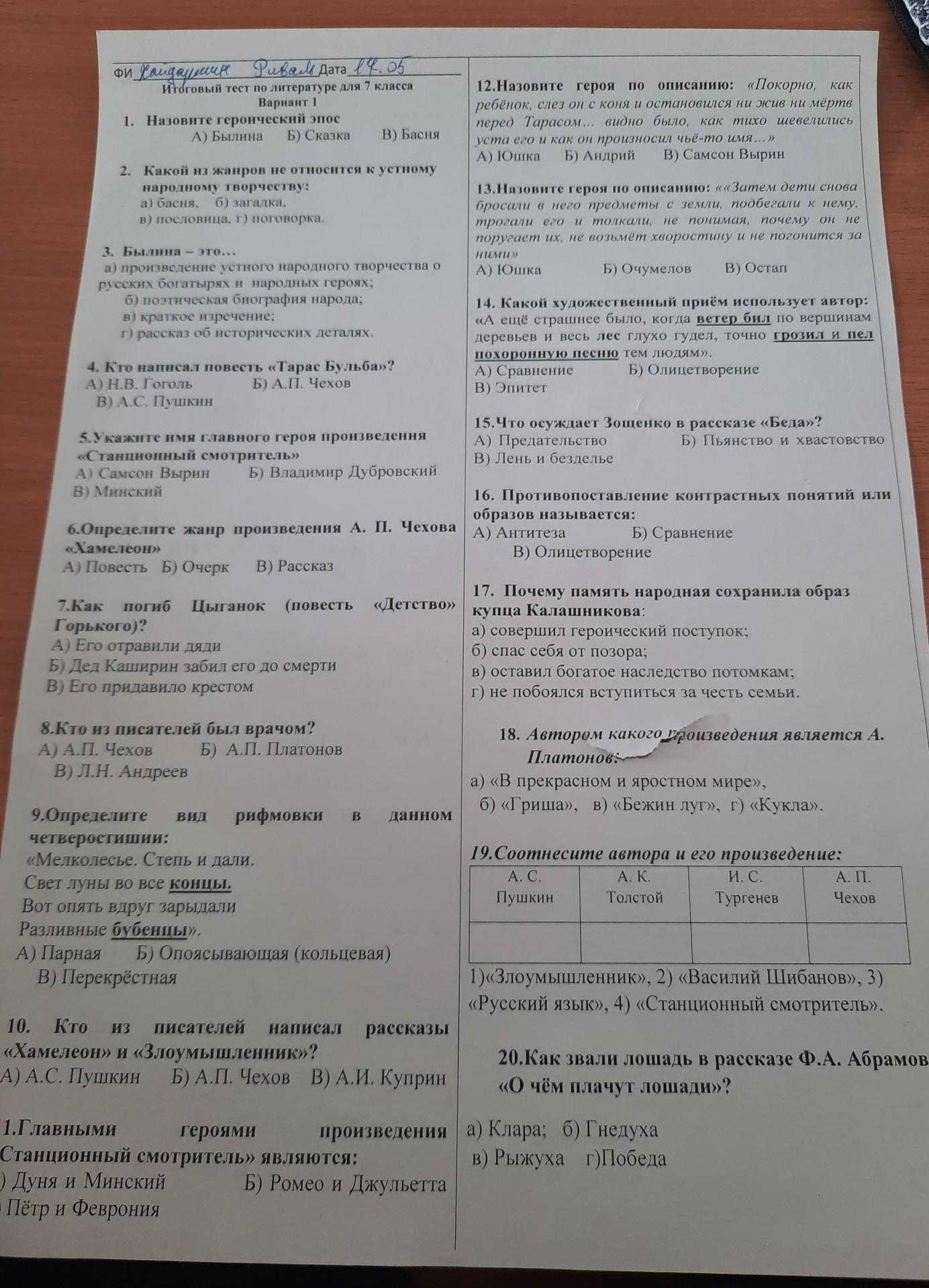 19- Пушкин- 4, Толстой- 2, Тургенев- 3, Чехов- 1