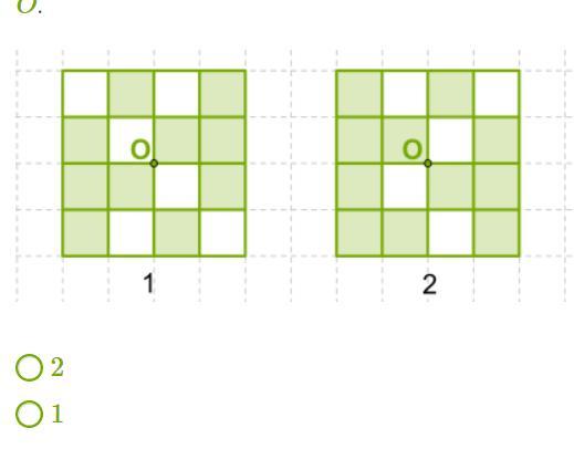 Отметь, на котором рисунке квадрат закрашен так, что окраска не является симметричной относительно точки