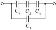 три конденсатора послідовні і один до них паралельний.