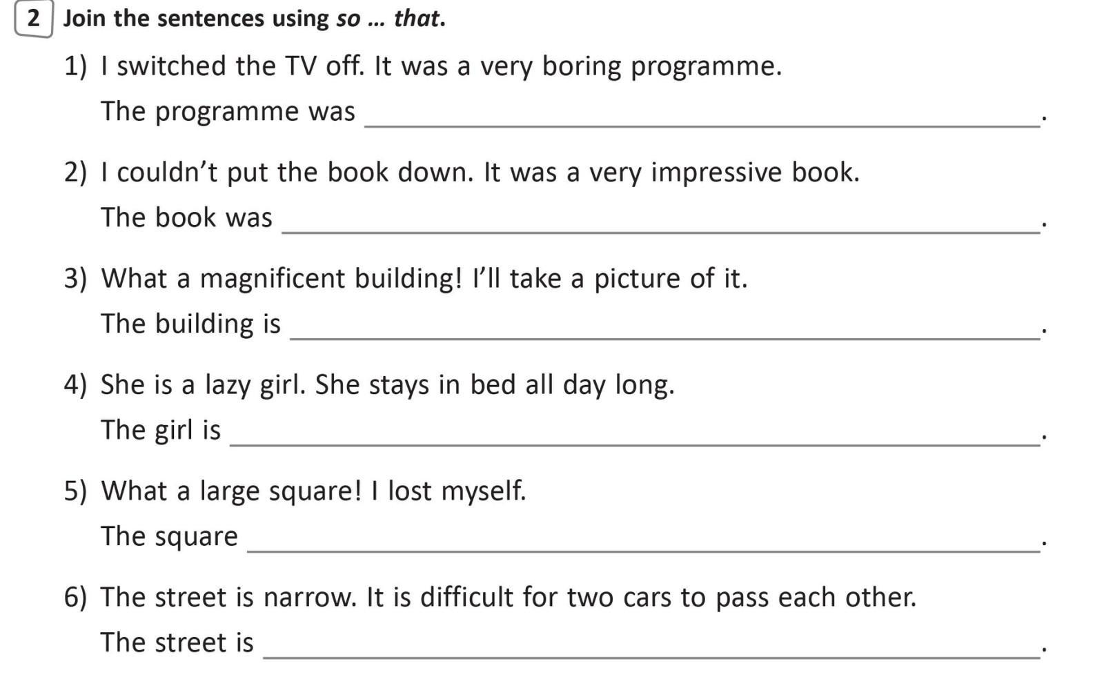 3. У третьому завданні потрібно скласти одне речення з двох використовуючи конструкцію SO + прикметник + THAT. СРОЧНО ПОМОГИТЕЕ !! ДАЮ 40 БАЛОВ