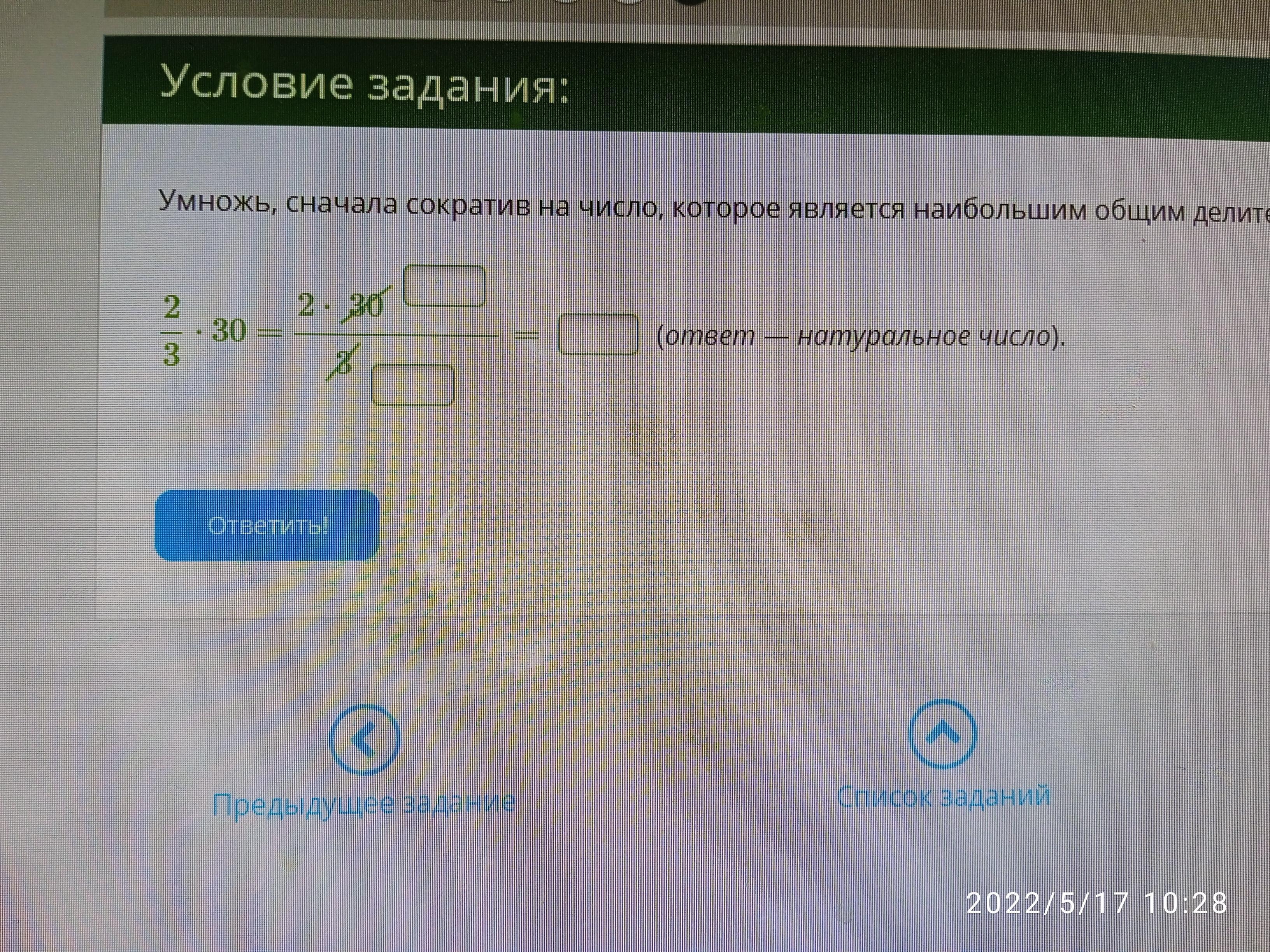 сокращаем 3 и 30, получается 2*10, ответ 20