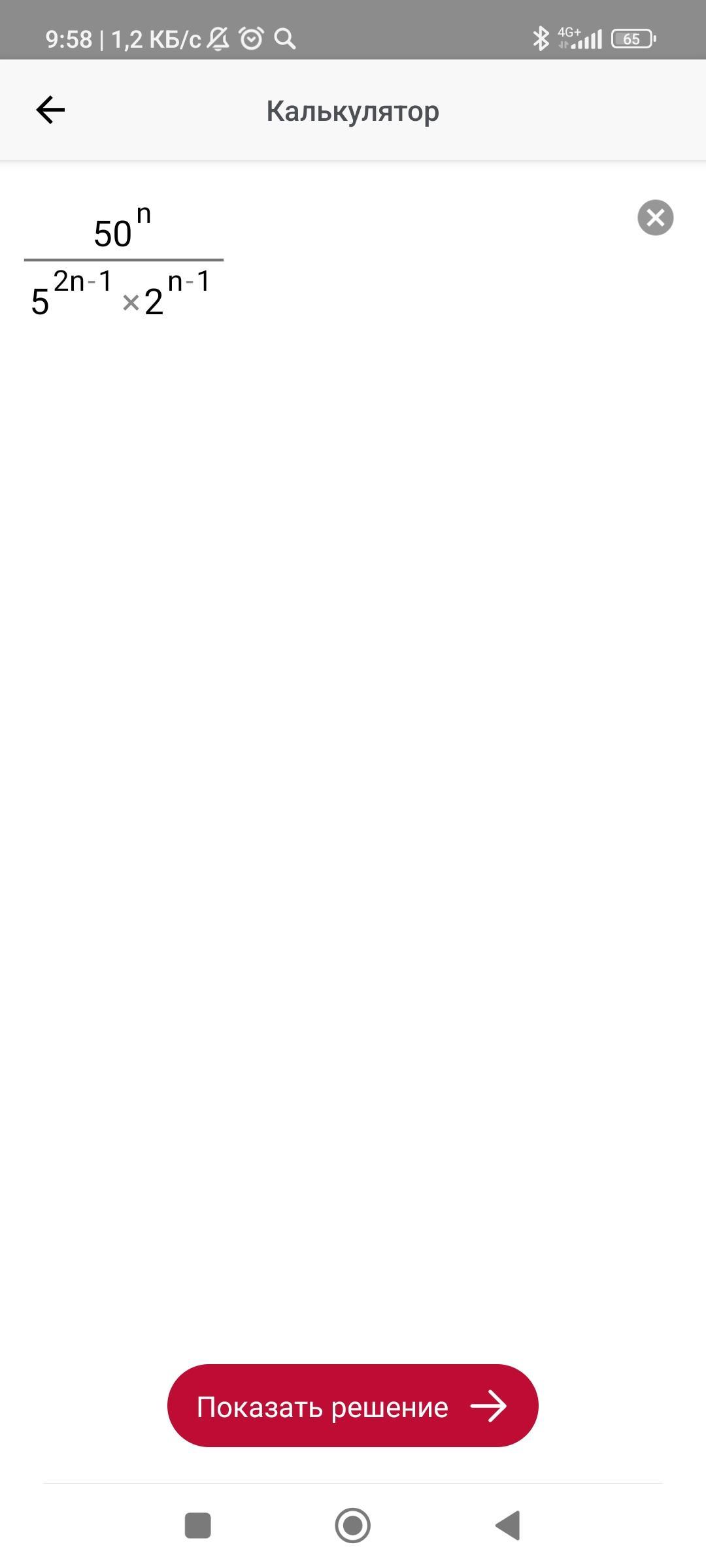 50ⁿ/( 5²ⁿ⁻¹ x 2ⁿ⁻¹ ) = ( 5² x 2 )ⁿ/( 5²ⁿ⁻¹ x 2ⁿ⁻¹ ) = ( 5²ⁿ * 2ⁿ )/( 5²ⁿ⁻¹ x 2ⁿ⁻¹ ) =