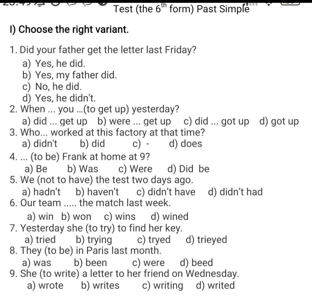 1-a) 2-a) 3-c) 4-b) 5-c) 6-b) 7-a) 8-c) 9-a)
