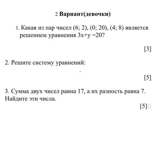 3. Сумма двух чисел равна 17, а их разность равна 7. Найдите эти числа.
