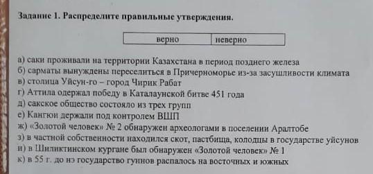 Задание 1. Распределите правильные утверждения. верно неверно