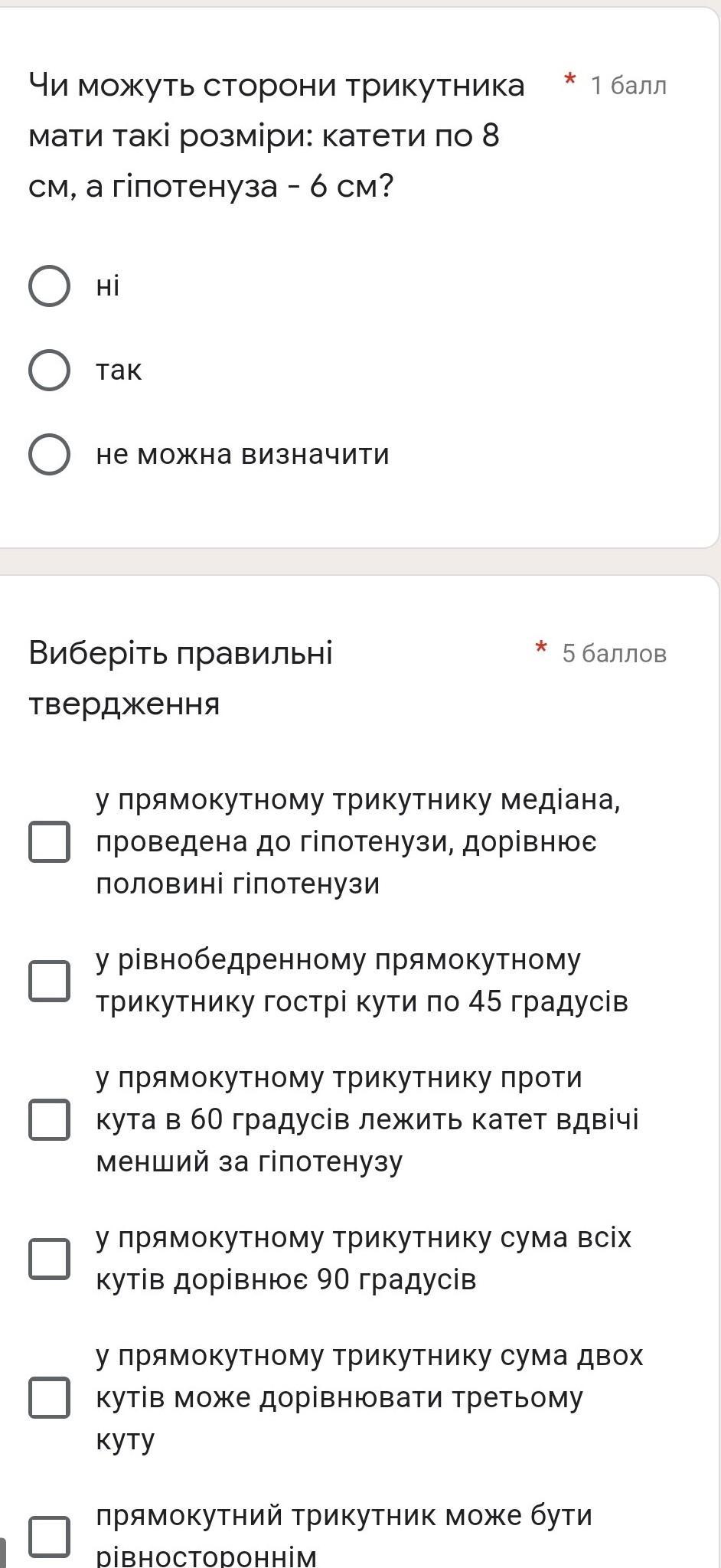 1. Ні , не може томущо гіпотинуща завжди біль ніж катети