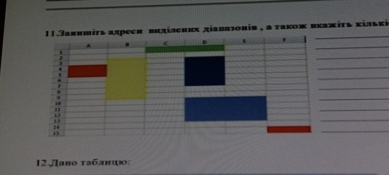запишіть адреси виділених діапазонів а також вкажіть кількість комірок ПОМОГИТЕ ПОЖАЛУЙСТА СРОЧНО!!!!!