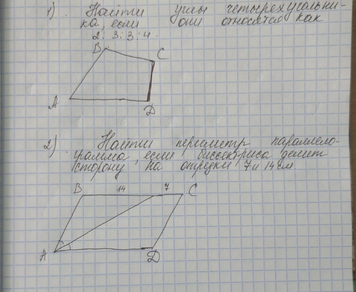 1. сумма всех углов четырехугольника равна 360°