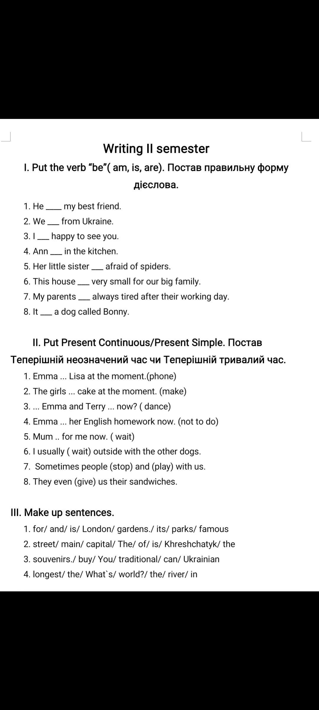 1is,are,am,is,is,is,are,is2 is phoning,are making,are ..dancing? isn,t doing,is waiting,wait,Sto,play,give3 London is famous for its parks and gardens.The K...is the main Street of the capital. you can buy traditional U. souvenirs what,s the longest river in the world?