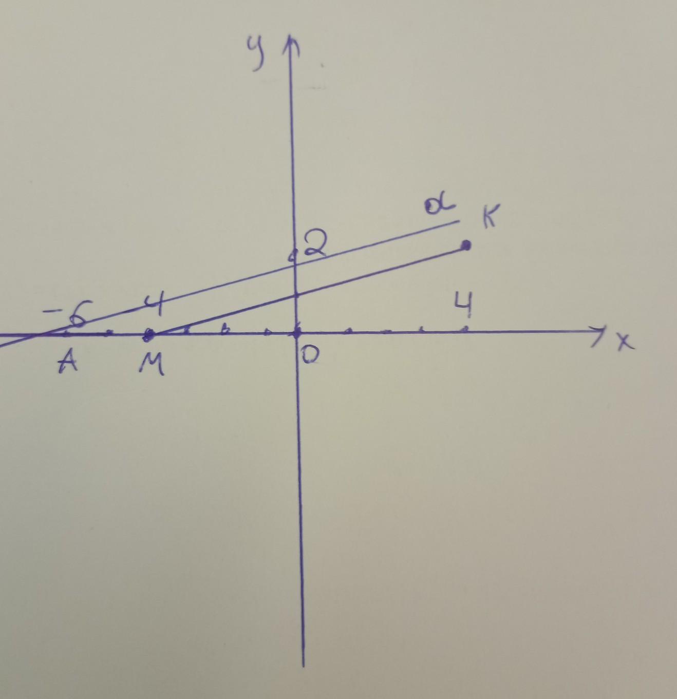 Отметьте на координатной плоскости точки К(4;2) М(0;-4) и А(-6;0).Проведите прямую КМ.Через точку А проведите прямую a ,паралельную прямой КМ ,и прямую b,перпендикулярную прямой КМ.