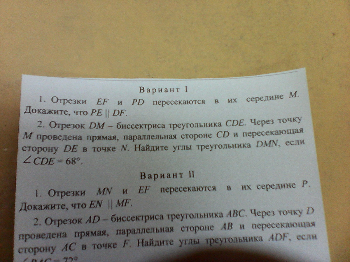 отрезки EF и PD пересекаются в их середине М .Докажите,что PE паралельно DF