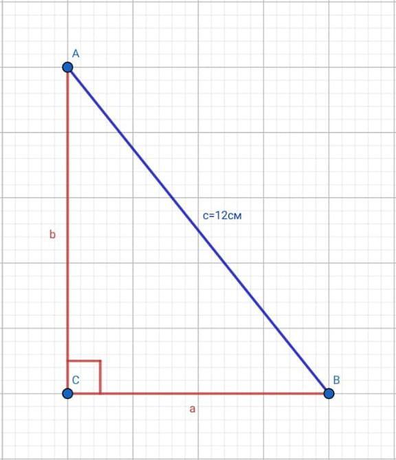 гипотенузе прямоугольного треугольника равна 12см . Какую длину может иметь один из его катетов? а) 12см б)4.5см в)13см?