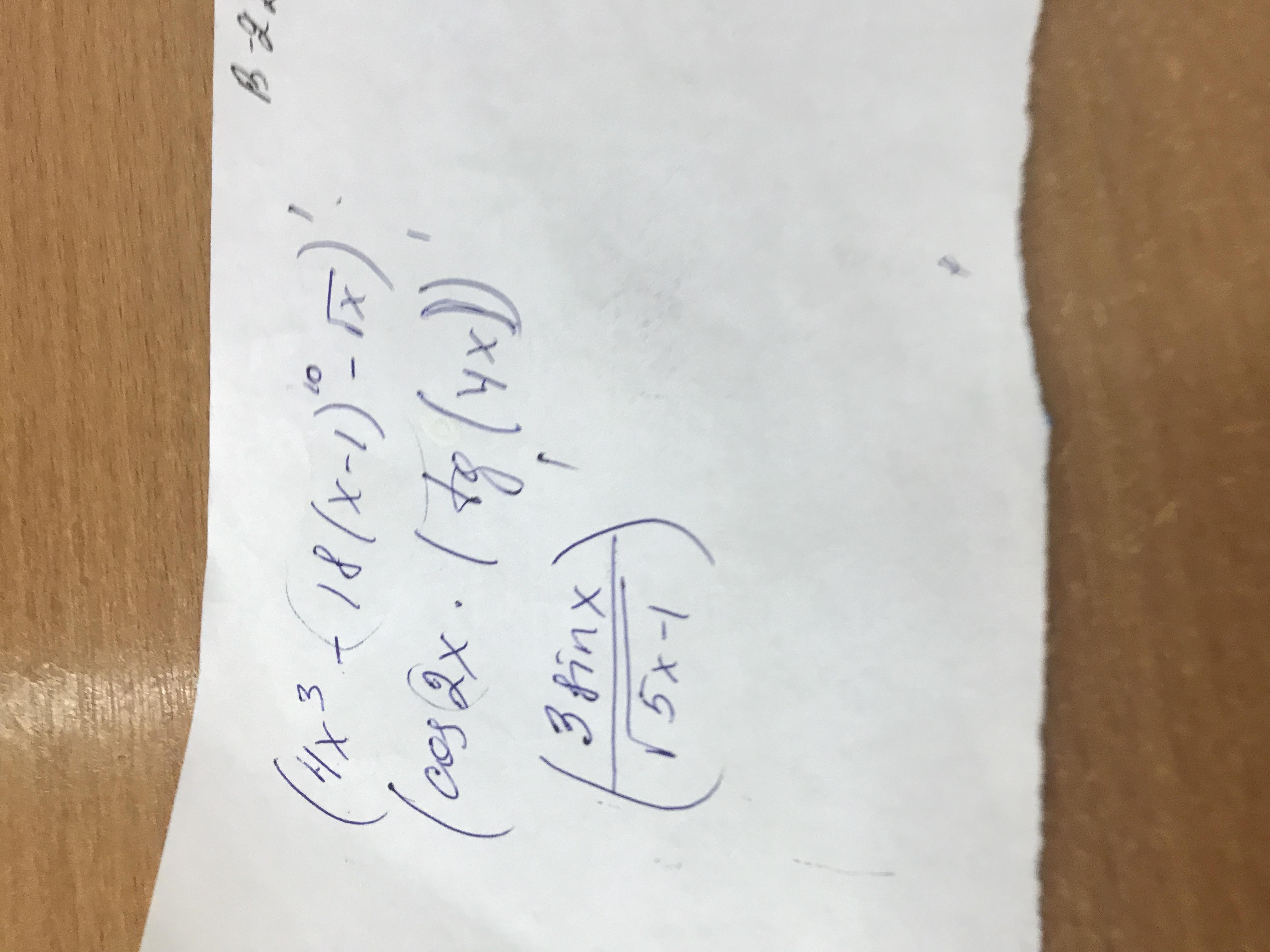 3) ( 3sinx' *√(5x-1) - 3sinx * √(5x-1)' ) / 5x-1 = (3cosx*√(5x-1) - 3sinx * 1/(2*√(5x-1)) / 5x-1 = (6cos x(5x-1) - 3sinx) / 2*√(5x-1)*(5x-1)