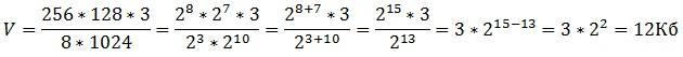 изображения на количество информации на один цвет или пиксель: 128 * 256 * 3 = 98304 бит