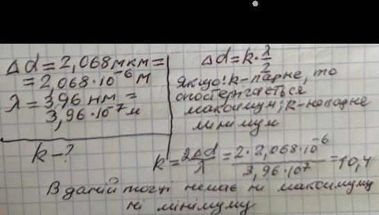 Яким буде результат інтерференції когерентних хвиль (\ = 396 нм), якщо різниця ходу складає 2,068 мкм