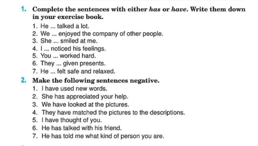 в другому замість have пишеш haven’t а замість has пишеш hasn’t
