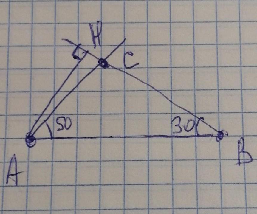 Постройте треугольник АВС, по стороне АВ=4см, угол А= 50°, угол В = 30°