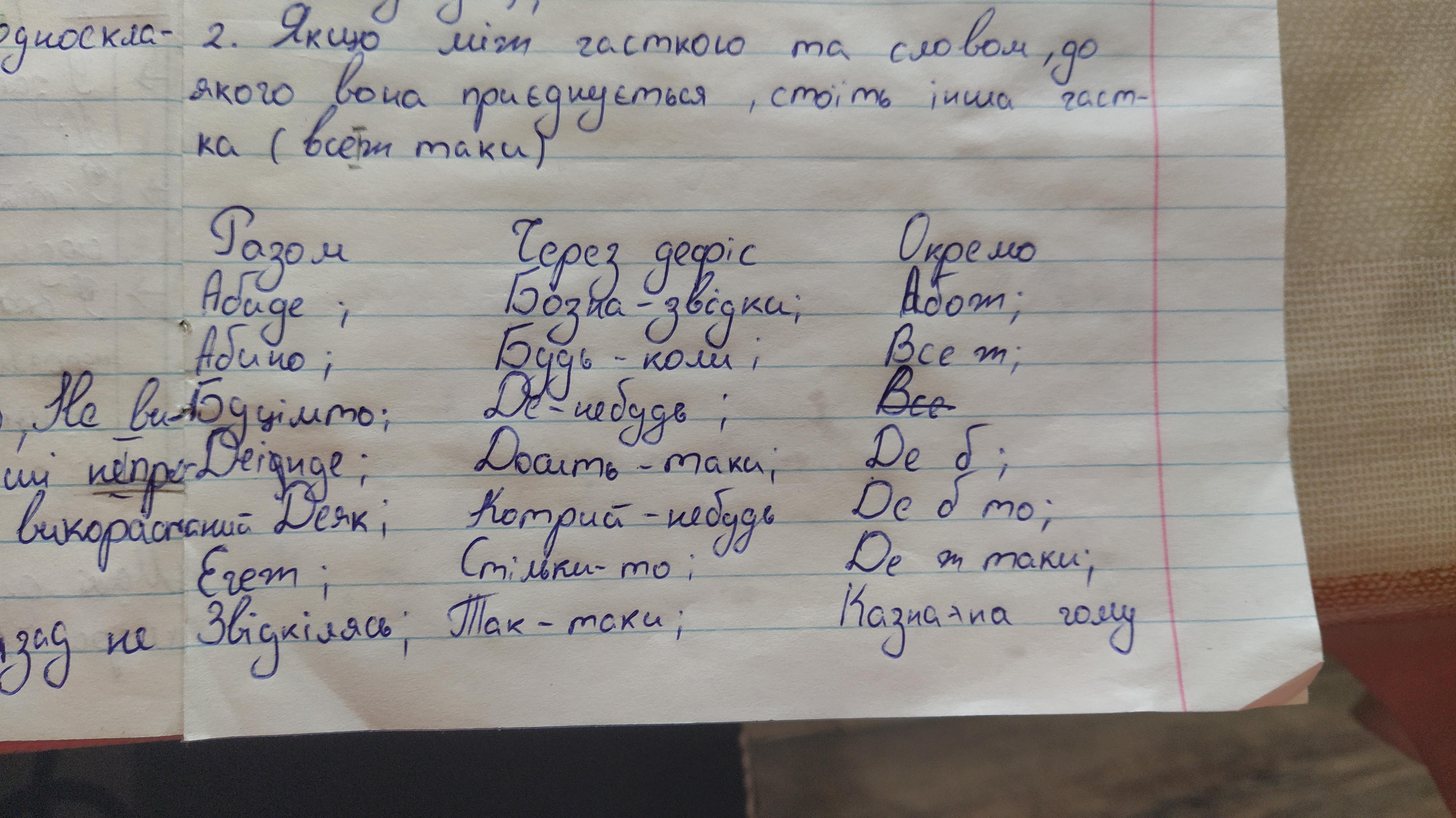 Аби/де, аби/но, або/ж, бозна/звідки, будь/ коли,