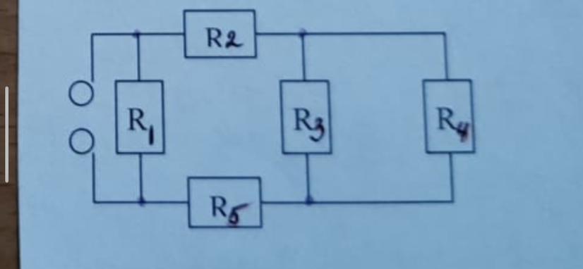 Срочно!! Найдите общее сопротивление цепи, если R1=6 Ом, R2=1,6 Ом, R3=6 Ом, R4=4 Ом, R5=2 Ом.