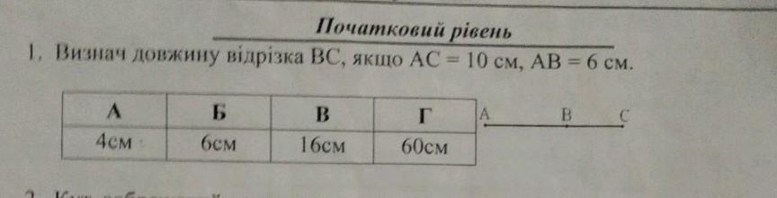 1. Визнач довжину відрізка ВС, якщо AC = 10 см, AB = 6 см