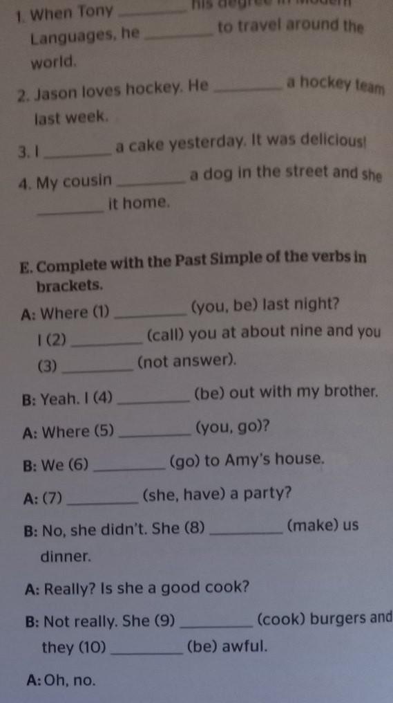 Complete with the Past Simple of the verbs in brackets ЗАДАНИЕ D и E уумоляю КТО ПОНИМАЕТ АНГЛИЙСКИЙ СЮДААААААААААААААА помогите пожалуйста ❤️❤️❤️❤️ УМОЛЯЮЮЮ ПЖПЖПЖПЖПЖПЖПЖПЖ ПЖ ПЖ ПЖ ПЖ ПЖ ПЖ ПОМОГИИИИТЕЕЕЕЕЕ ПЖ ПЖ ПЖ ПЖ ПЖ ПЖ ПЖ ПЖ ПОМОГИИИИТЕЕЕЕЕЕ ПЖ ПЖ ПЖ ПЖ ПЖ ПОМОГИИИИТЕЕЕЕЕЕ ПЖ ПЖ ПЖ ПЖ ПЖ ПЖ ПЖ ПЖ ПЖ ПЖ ПЖ ПЖ ПЖ ПЖ ПОЖАААААААЛУЙСТАААААААА пж пж пж пж ПОЖАЛУЙСТА ПЖ ПЖ ПЖ ПЖ ПЖ ПЖ ПЖ ПЖ ПЖ ПЖ ПОМОГИИИИТЕЕЕЕЕЕ умоляю ПЖПЖПЖ