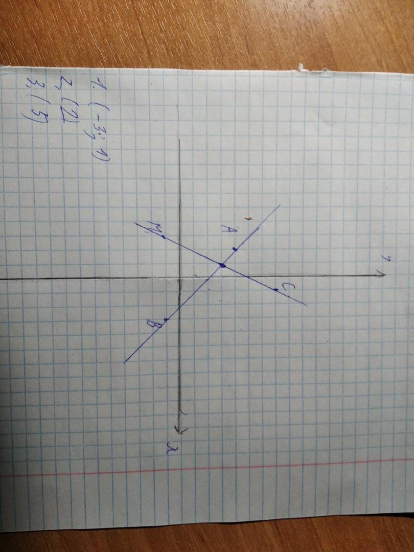 Познач на координатній площині точки А(-2;4); В(3;-1); С(1;7); М(-3;-1). Знайди координати точки перетину: 1) прямих АВ і МС; 2) прямої АВ з віссю абсцис; 3) Прямої МС з віссю ординат