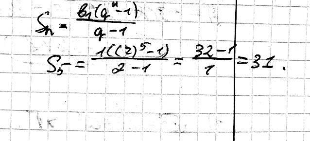 Знайти S5 - суму п'яти членів геометричної прогресії, якщо b1 = 1, q = 2.