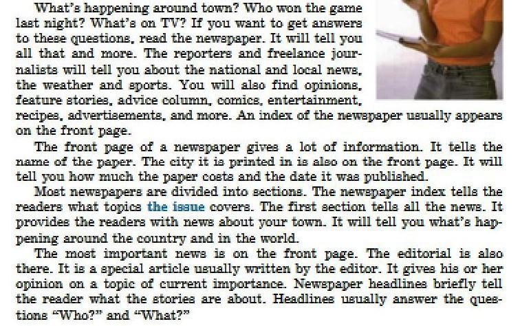4. Which section of the newspaper tells the readers all the news?