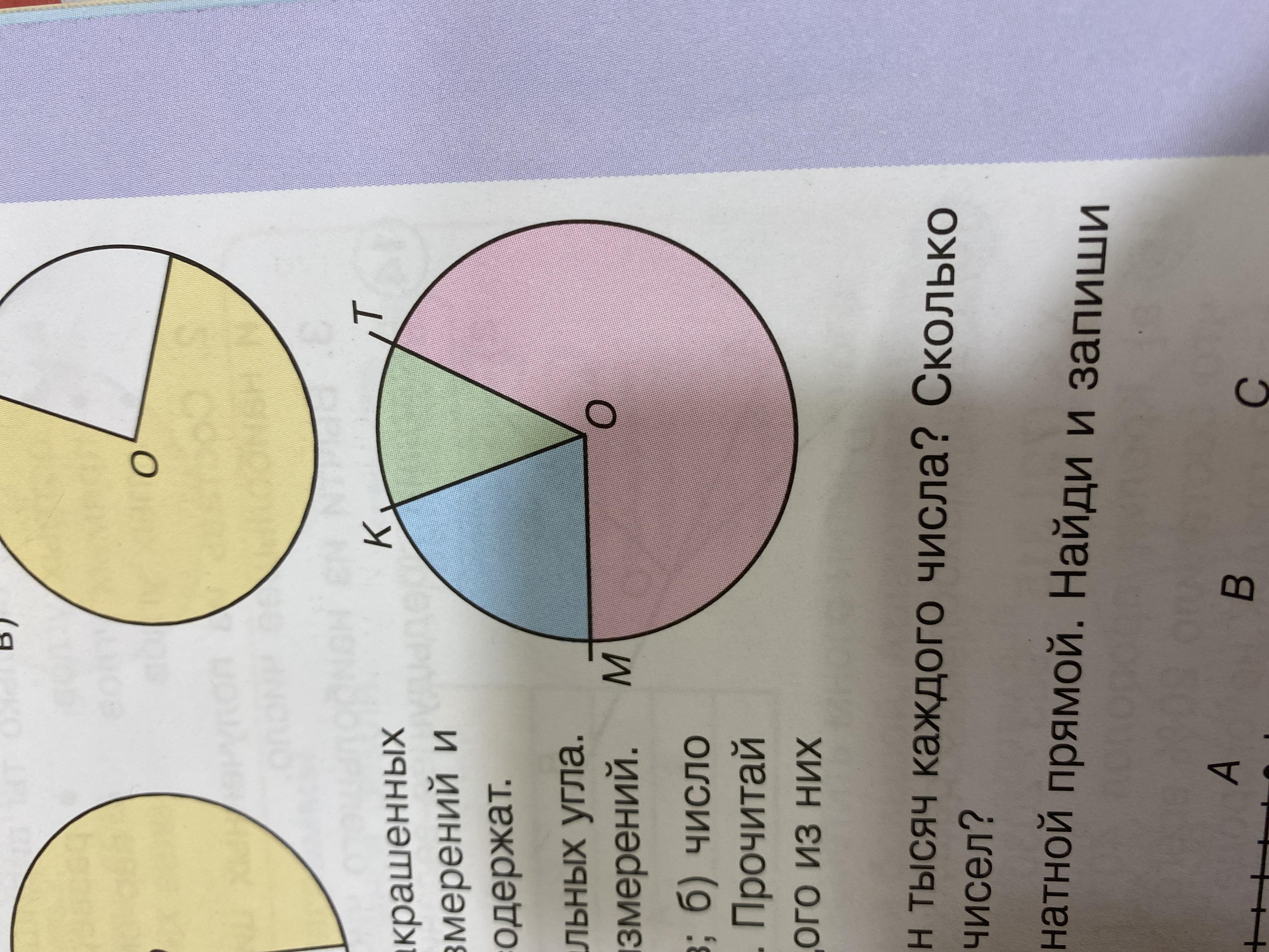 Найди на рисунке три других центральных угла. Определи их величину, не выполняя измерений.