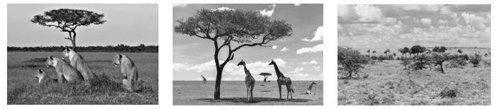 В какой из указанных природных зон (саванны и редколесья, влажные экваториальные леса) могли быть сделаны представленные фотографии. Запишите название природной зоны.