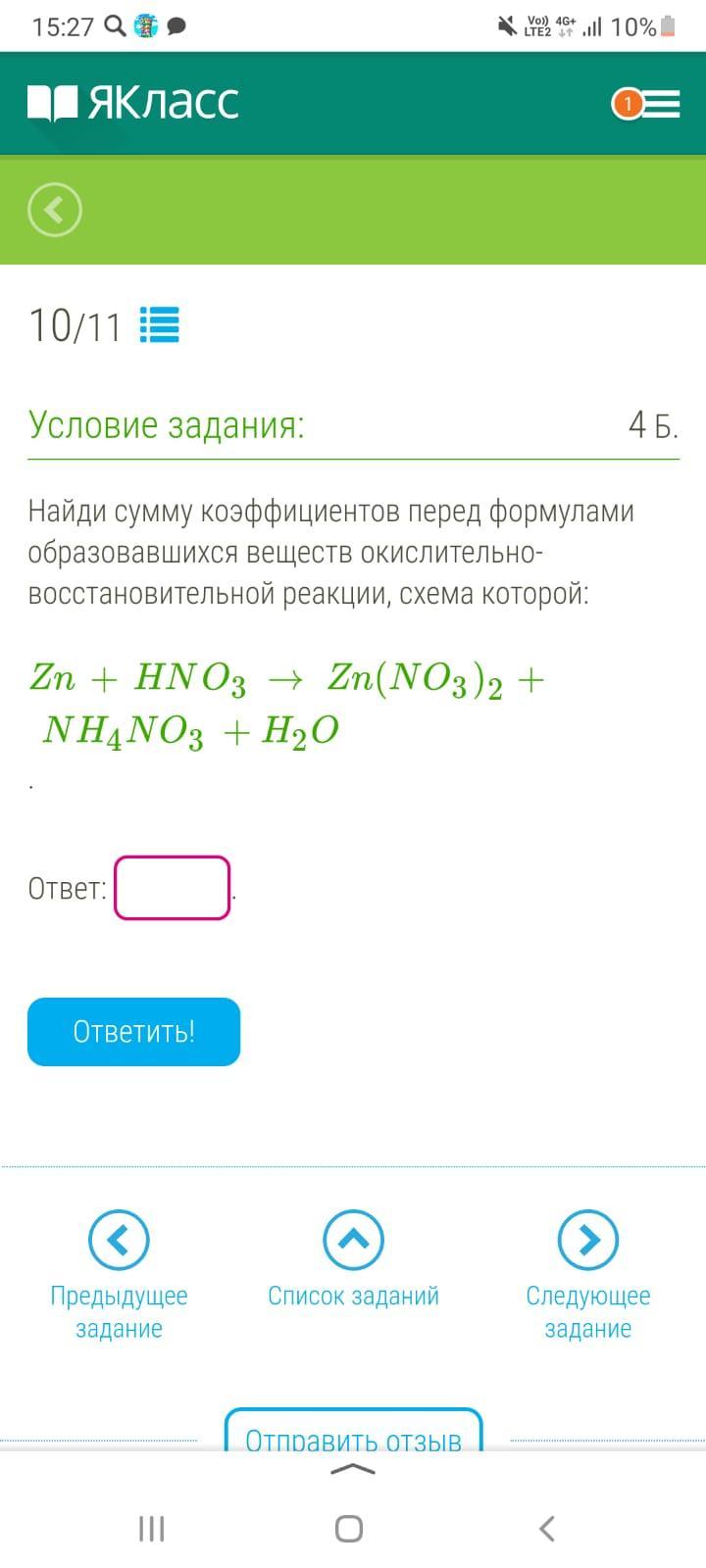 4Zn + 10HNO3 = 4Zn(NO3)2 + NH4NO3 + 3H2O