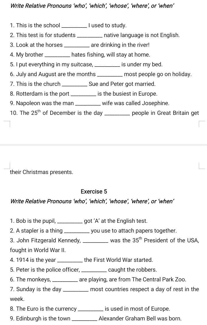 1 - задание,1,7 - where,2,9 whose,3,8,5 which,4 who,10,6 when 2 задание - 1,3,5 who,2,6,7,8 which,4 when,10 where