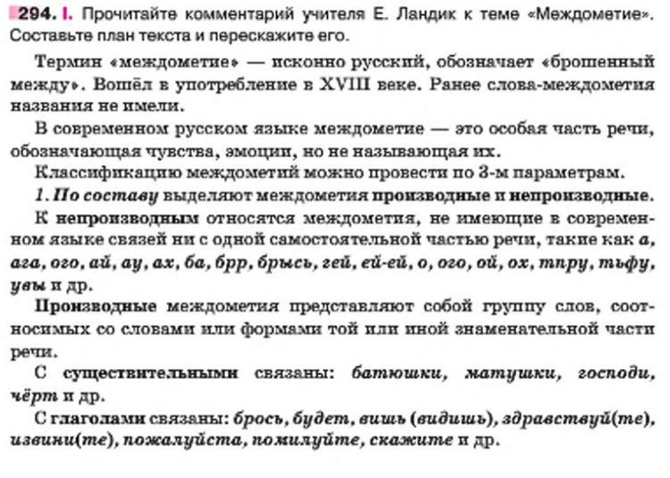 Прочитайте коментарии учителя Е. Ладник к теме Междометие. Составьте план текста и перескажите его.