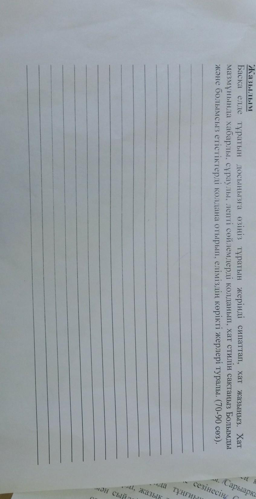 Сәлем досым!Қалың қалай алдында сен маған өз қалаңды таныстыр демеме пе едің?Стелла мұнарасы,Атамекен өнер ордасы,Қадір Мырза әлі паркі,өлкетану тану музейі біздің қаламыздың әсемдігі. тарихын естісең таңырқап аңызын тыңдасаң ауызыңды ашып қаласың.Сау бол.
