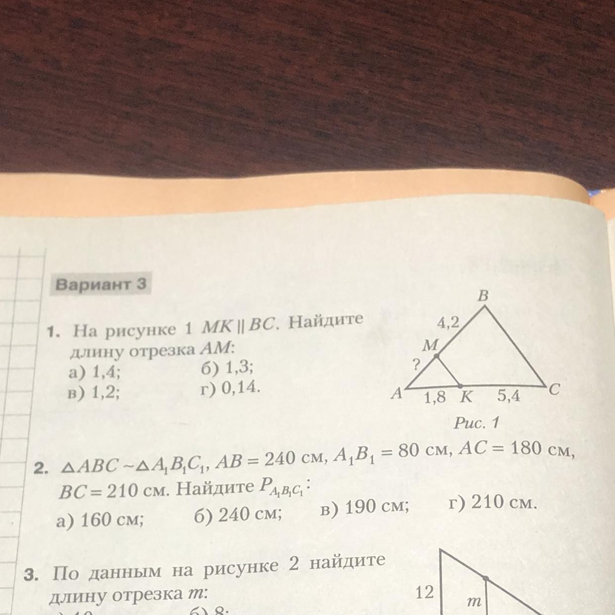 Ответ:1; на рисунке 1mk вс найдите длину отрезка am