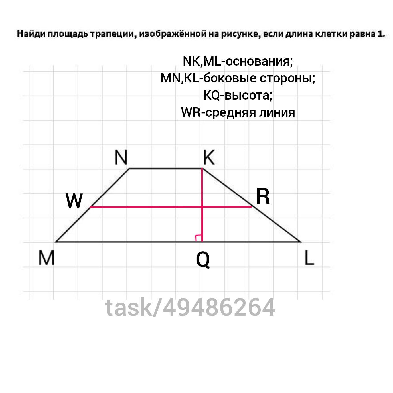 - найдем площадь трапеции,учитывая,что она равна произведению ее средней линии на высоту: