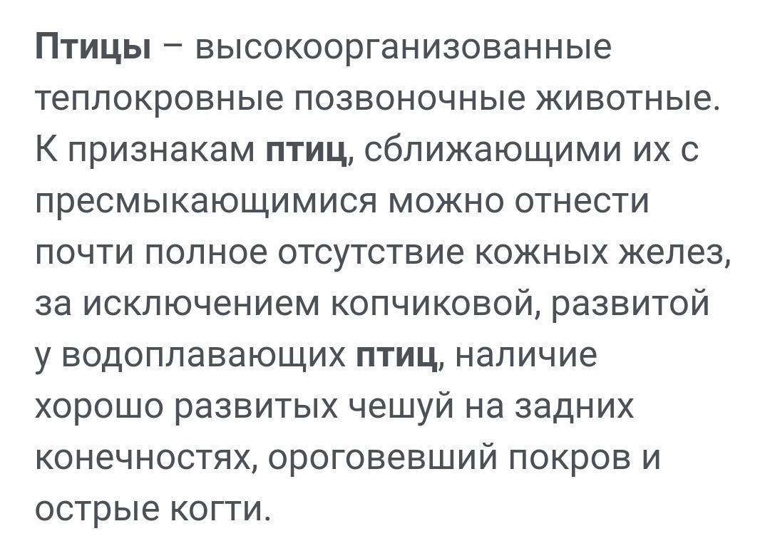 описать класс Птицы по плану (кроме многообразия, размножения и значения)