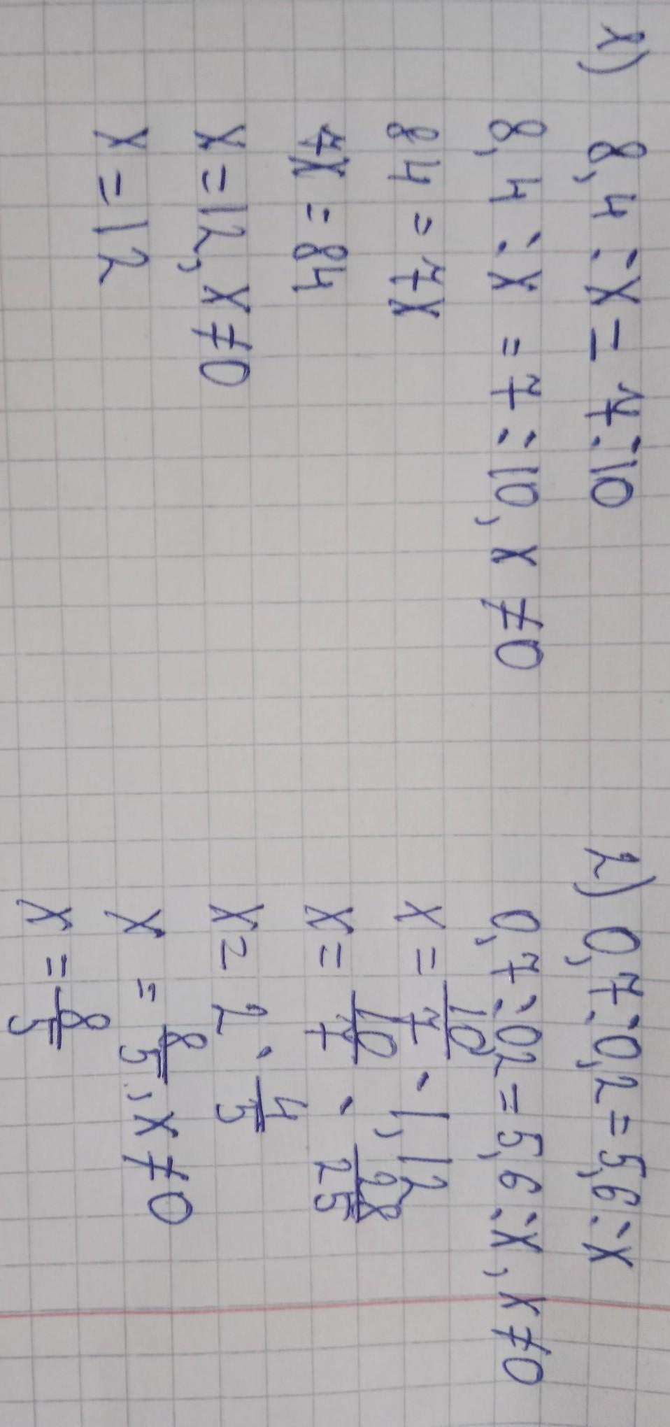 1) 8,4 : х = 7:10 - пропорция