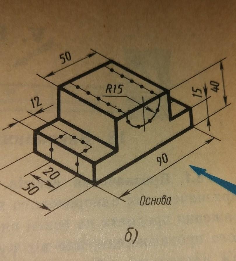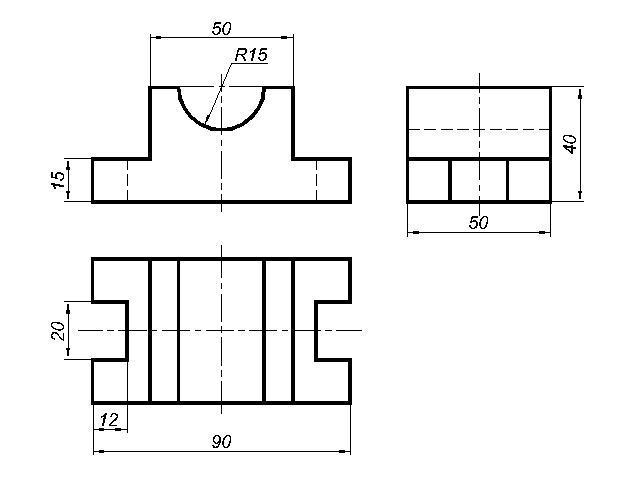 Графічна робота .На форматі накреслити три проекції зміненої деталі,проставити розміри.По намітці видалити частини деталі,вона симетрична