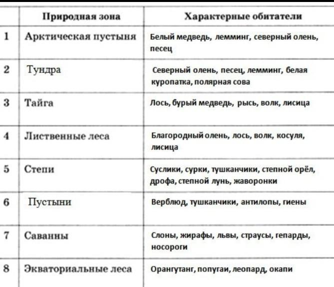 (В ТАБЛИЦЕ 8 ПРИРОДНЫХ ЗОН !!!!)